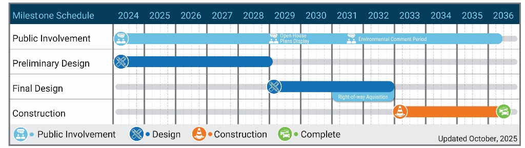 Before choosing this new route, we took a close look at several options and selected the one that best met our goals for safety, mobility, and minimal environmental impact. The preliminary design phase started in March 2024, and the Bowman Consulting Group Team was brought on in 2023 to help bring this vision to life.