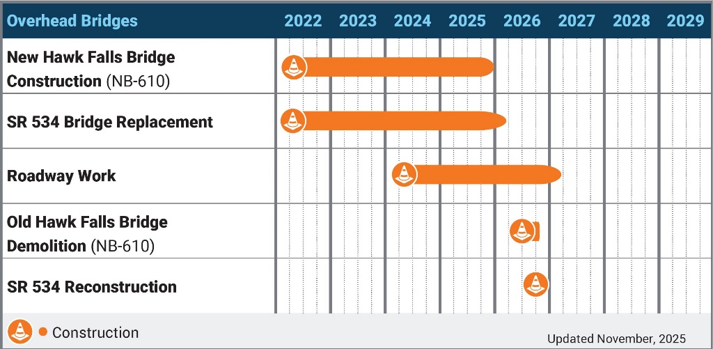 The Hawk Falls Bridge Project includes the full replacement of the Hawk Falls Bridge (NB-610) at Milepost A88.59 and the nearby Hickory Run Road Bridge in Penn Forest and Kidder Townships, Carbon County. The new Hawk Falls Bridge will be a 720-foot-long steel structure with a 480-foot deck arch span, accompanied by four 60-foot deck plate girder spans. Like the existing bridge, the new one will accommodate two traffic lanes in each direction, along with 12-foot-wide outside shoulders and 6-foot-wide median shoulders. To achieve an aesthetically pleasing design, three welded, steel box arch ribs will be used to span the deep Mud Run Valley within Hickory Run State Park.